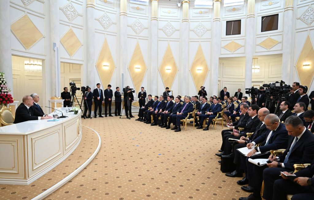 During the official one-on-one meeting, President Tokayev welcomed President Aliyev, highlighting the close ties between the two nations, describing Azerbaijan and Kazakhstan as not only friendly states but also as “brotherly nations.” He emphasized that deepening multifaceted cooperation remains a top priority for Kazakhstan, acknowledging Azerbaijan’s growing international influence and regional importance.
